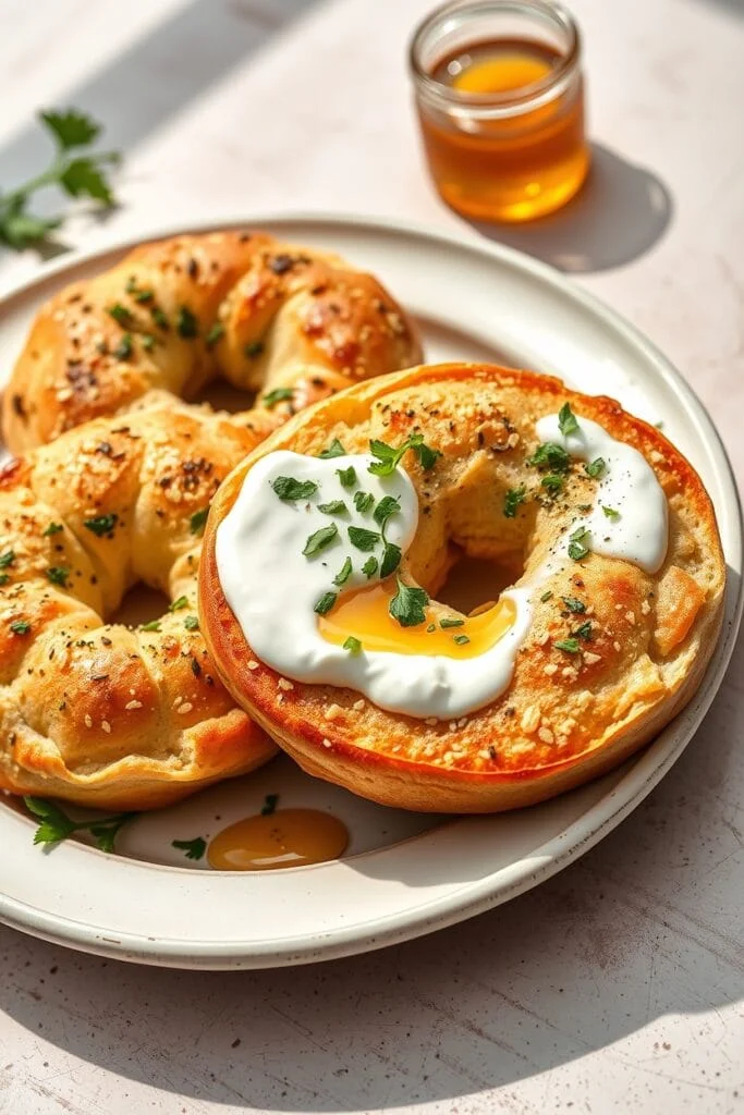 These protein-packed, gluten-free bagels are soft and fluffy, made with Greek yogurt and a flavorful balance of honey and herbs, perfect for any breakfast table.