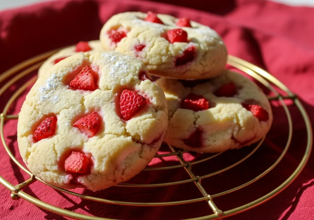 For Valentine’s Day, consider edible glitter or tiny heart-shaped sprinkles to make your Strawberry Cheesecake Cookies Recipe extra festive and romantic.